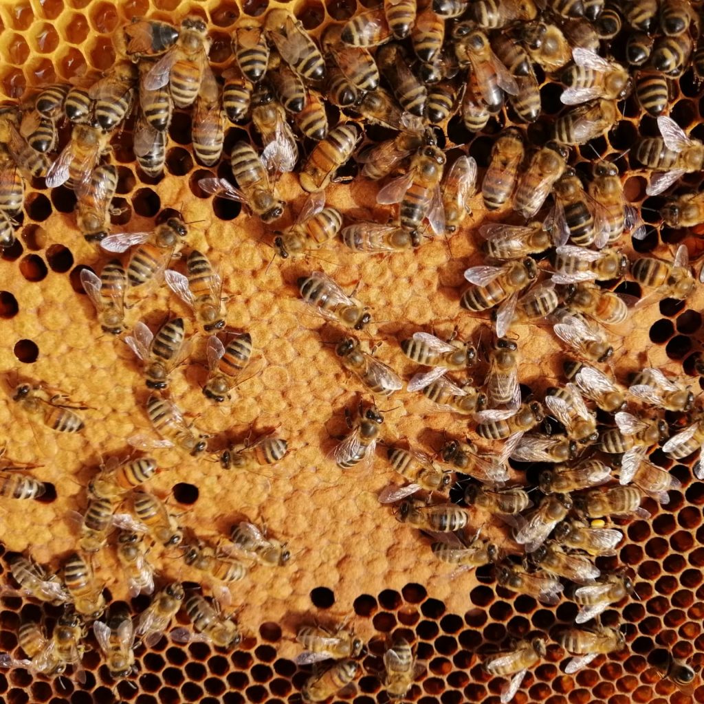 Die Bewirtschaftung unserer Bienenvölker betrachten wir als solidarische Zusammenarbeit mit unseren unzähligen fleißigen Kolleginnen, die wir respektvoll pflegen.